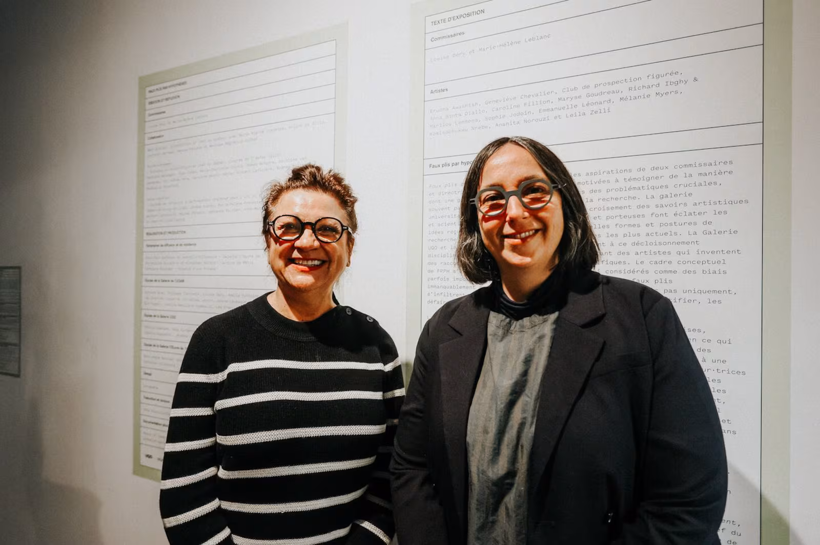 Les directrices de galeries universitaires de l’UQO et de l’UQAM, Marie-Hélène Leblanc et Louise Déry, ont réfléchi en 2022 une exposition portée par des idées qui remettent en question les normes, font éclater les idées reçues et les a priori. Ce projet, Faux plis par hypothèses, a reçu le Prix d’excellence 2025 remis par la Société des musées du Québec.